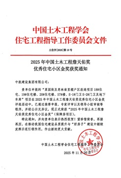 詹天佑獎優(yōu)秀住宅小區(qū)金獎——是經(jīng)國家科技部批準(zhǔn)、住建部認(rèn)定的中國土木工程領(lǐng)域最高獎項之一,此番斬獲這一行業(yè)重量級榮譽,是集團(tuán)公司堅守匠心筑造,踐行高質(zhì)量發(fā)展理念的有力彰顯,更是我們在城市更新領(lǐng)域綜合實力與民生責(zé)任擔(dān)當(dāng)?shù)臋?quán)威印證。