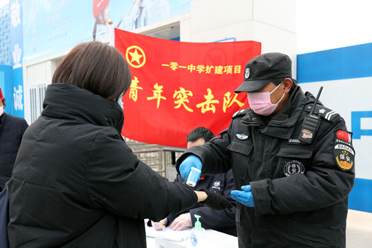 檢查中項(xiàng)目管理人員介紹,項(xiàng)目部嚴(yán)格落實(shí)相關(guān)政府部門工作部署要求,第一時(shí)間成立疫情防控應(yīng)急領(lǐng)導(dǎo)小組,對(duì)未離京項(xiàng)目人員進(jìn)行防疫宣傳,包車接回返崗人員進(jìn)行登記備案,及時(shí)隔離觀察;項(xiàng)目實(shí)行封閉式、分區(qū)域管理,設(shè)立隔離間并儲(chǔ)備充足的疫情防控物資;項(xiàng)目人員一天測(cè)量?jī)纱误w溫并做好臺(tái)賬記錄;食堂采取分時(shí)段進(jìn)餐制,同時(shí)用隔板將餐桌隔斷,盡量減少人員接觸;項(xiàng)目大門區(qū)域由值班人員定時(shí)消毒,各門崗做好進(jìn)入登記檢查消毒等防疫措施。“項(xiàng)目自正式復(fù)工以來(lái),按照有關(guān)防疫規(guī)定和安全管理要求做了許多工作。制定了詳細(xì)的復(fù)工方案和防控應(yīng)急預(yù)案,壓實(shí)安全管理工作,及時(shí)發(fā)現(xiàn)和處置安全隱患,確保施工安全。”項(xiàng)目經(jīng)理徐剛說(shuō)。
