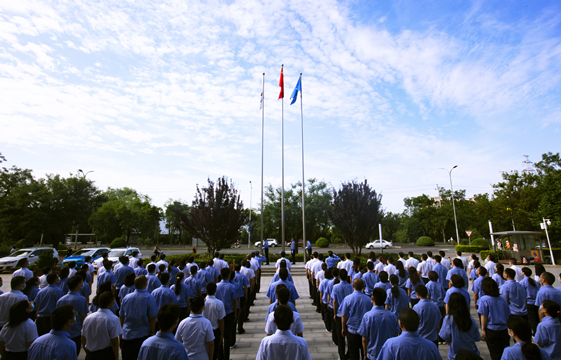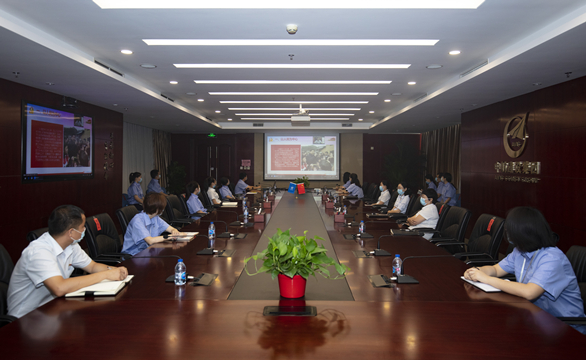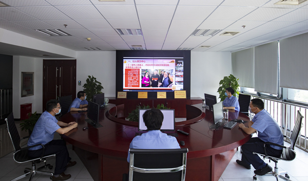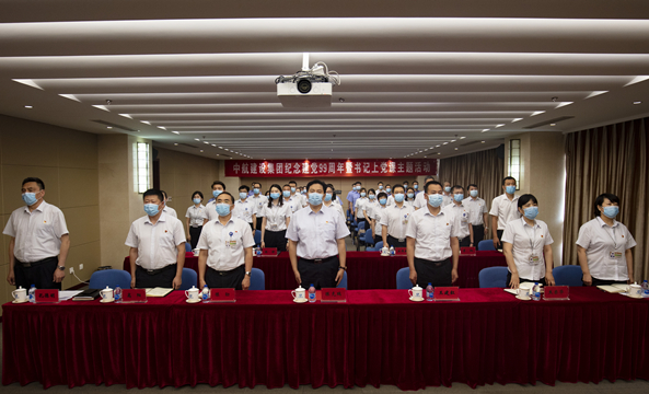上午8時08分,主題活動以“迎七一,升國旗”儀式拉開序幕。儀式結束后,以集團多功能廳為主會場,視頻會議室為分會場,各二級單位、項目部及京外單位通過網絡會議系統同步收看參加了主題黨課活動。