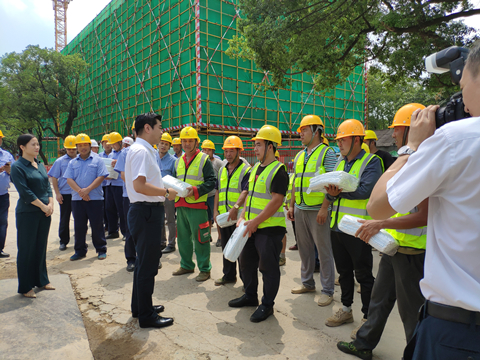 8月21日上午十一點,接近中午烈日炎炎,湘江集團黨委書記、董事長張利剛一行來到中航建設集團承建的長沙科技創(chuàng)意園項目,現(xiàn)場看望慰問高溫天氣下依然堅守戰(zhàn)斗在崗位上的廣大建設者,為大家送來了冰箱、電風扇、涼茶、藿香正氣水、夏桑菊、西瓜等防暑降溫用品。