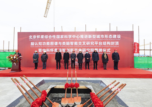 2020年12月2日,由中航建設(shè)集團(tuán)承建的腦認(rèn)知功能圖譜與類腦智能交叉研究平臺喜迎主體結(jié)構(gòu)封頂。中科院自動化研究所所長徐波,中科院科技創(chuàng)新發(fā)展中心(北京分院)副主任姜曉明,北京市發(fā)展和改革委員會副主任林恩全,北京市科學(xué)技術(shù)委員會副主任許心超,懷柔區(qū)委書記、懷柔科學(xué)城黨工委書記戴彬彬,懷柔區(qū)委副書記、區(qū)長、懷柔科學(xué)城黨工委副書記于慶豐,懷柔區(qū)人大常委會主任彭麗霞,懷柔區(qū)政協(xié)黨組書記、主席劉久剛,懷柔區(qū)各委辦局及各鄉(xiāng)鎮(zhèn)一把手領(lǐng)導(dǎo),北京中科國金工程管理咨詢有限公司總經(jīng)理劉月霞,集團(tuán)公司黨委書記、董事長陳先瑞等相關(guān)單位領(lǐng)導(dǎo)出席儀式,中科院自動化研究所書記牟克雄進(jìn)行主持。