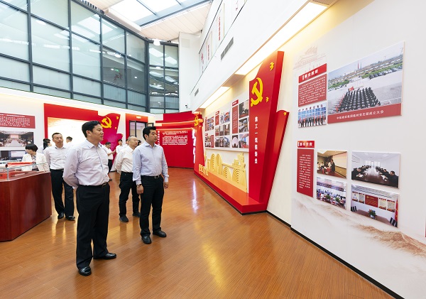 張董事長(zhǎng)一行首先參觀了集團(tuán)公司展廳,全面了解了集團(tuán)公司發(fā)展歷程、產(chǎn)業(yè)項(xiàng)目成果、企業(yè)文化、發(fā)展規(guī)劃以及黨建工作。