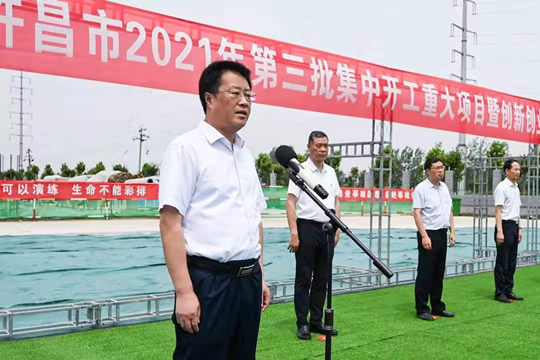 7月10日上午,河南省許昌市2021年第三批集中開工重大項目暨創新創業示范基地二期項目開工儀式順利舉行。許昌市委常委、紀委書記、監委主任方婷,魏都區委書記李朝鋒,區人大常委會主任申健民,區政協主席杜曉輝,區委常委、區委辦主任程中山,區委常委、區紀委書記、區監委主任徐光,魏都產業集聚區管委會主任楚文選,中航建設集團河南分公司總經理黃辰,魏都區政府相關部門、投資公司、產業集聚區、霸陵辦事處等單位負責人參加活動。區委常委、常務副區長張挪威主持儀式。