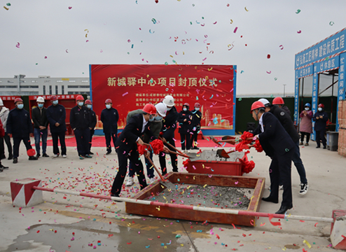 2022年1月25日,集團公司承建的四川成都新城驛中心項目(一標段),在施工現場舉行結構封頂儀式。現場裝飾一新,呈現出一派喜慶祥和的氛圍。項目建設、監理單位代表,項目部相關人員參加儀式。